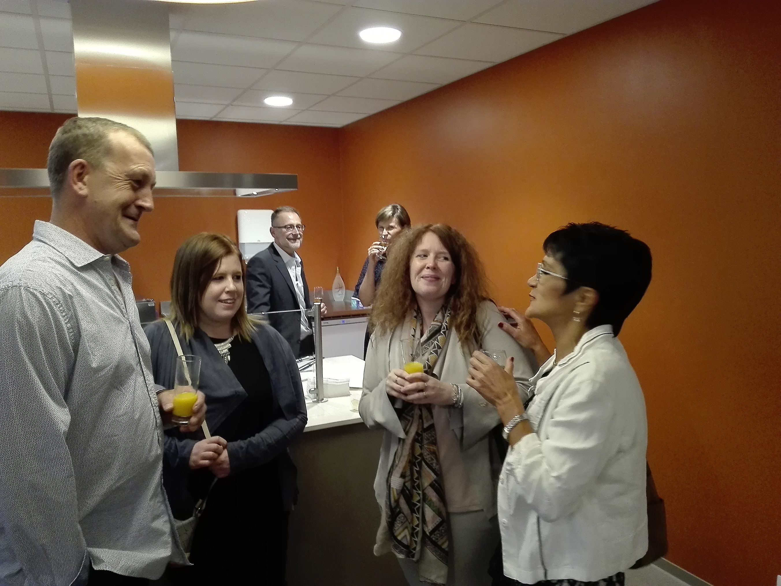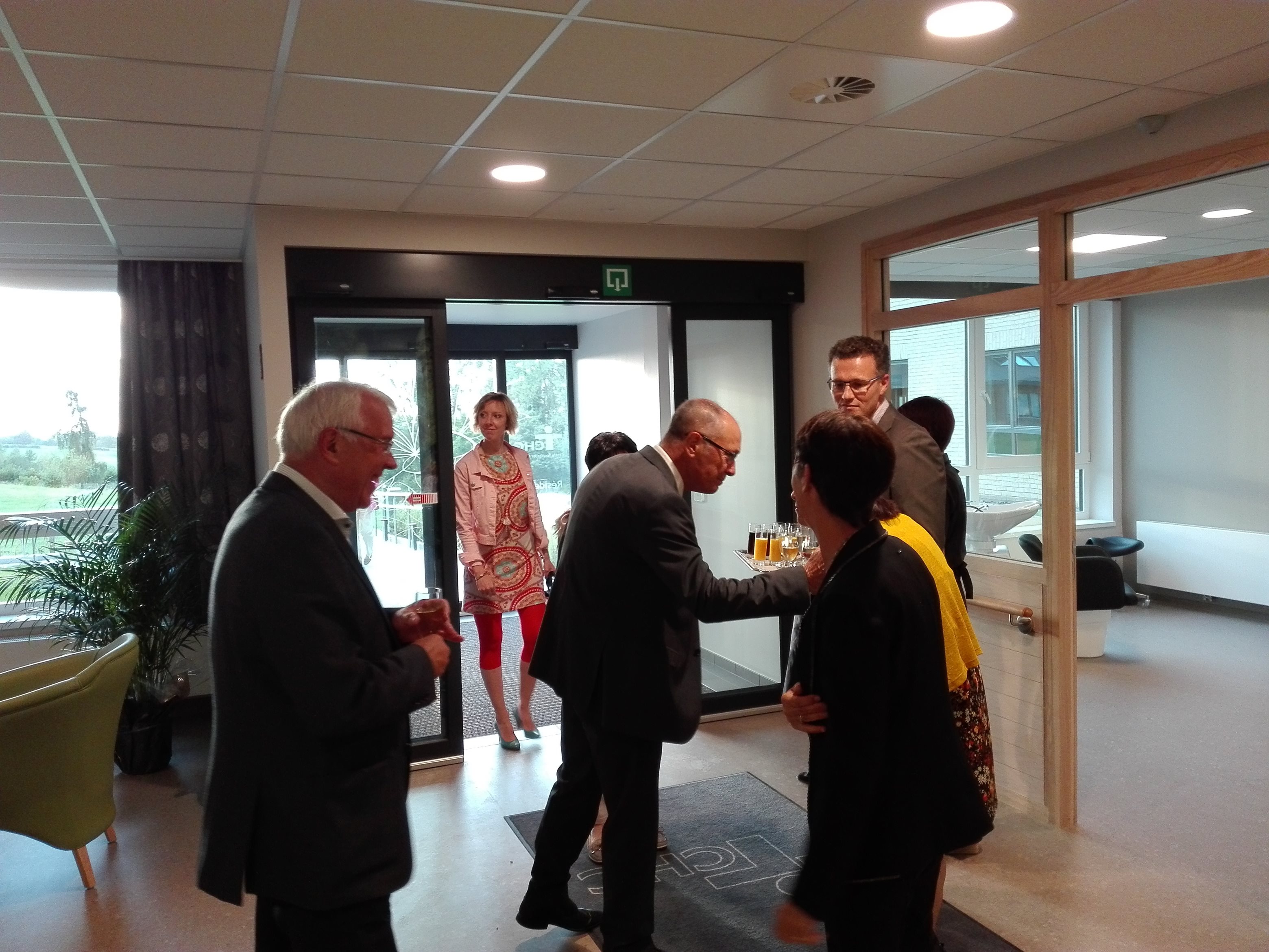 Les résidents et leur famille étaient également présents pour découvrir leur futur lieu de vie. Ils emménageront début octobre seulement. La nouvelle résidence comptera 27 lits de maison de repos et 31 lits de maisons de repos et de soins, ainsi que 12 lits de court séjour, soit un total de 70 lits. L’infrastructure a été conçue pour accueillir jusque 100 résidents, voire davantage moyennant quelques travaux supplémentaires. Une demande de lits supplémentaires a d’ailleurs été introduite en ce sens à la Région wallonne, comme l’ont rappelé René Thissen, président du conseil d’administration et Frédéric Cnocquart, directeur du Réseau senior lors des discours inauguraux. Patricia Wellershausen, la directrice de la maison, a quant à elle remercié chaleureusement tous les intervenants qui ont permis à ce beau projet de devenir réalité, au bout d’un parcours de 8 ans. En toute complicité et toute simplicité, l’équipe de la résidence a profité de l’occasion pour mettre à l’honneur sa directrice et Laetitia Hopmans, infirmière-chef, pour avoir mené le projet à bon port. Une page se tourne, une nouvelle va s’écrire.