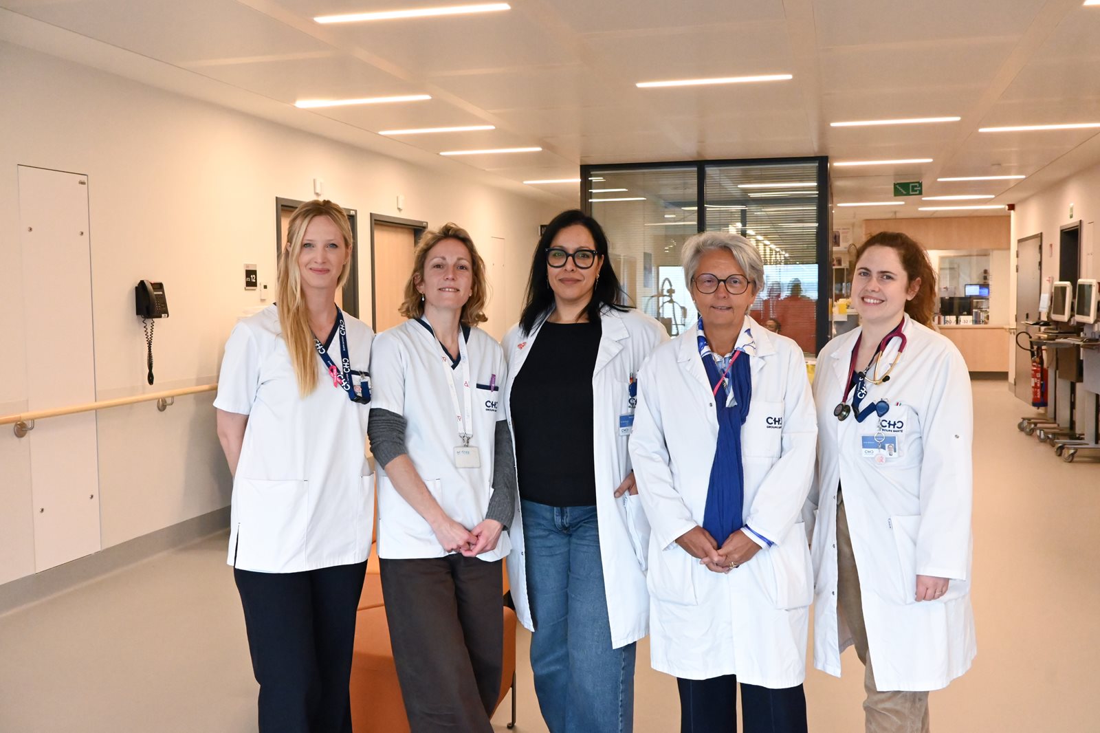 De gauche à droite: Drs Manon Daix et Stéphanie Tock, chirurgiens spécialisés en onco-gynécologie; Dr Maryam Bourhaba, oncologue; Dr Marie-Pascale Graas, chef du service d’oncologie; Dr Marie Scheen, oncologue.