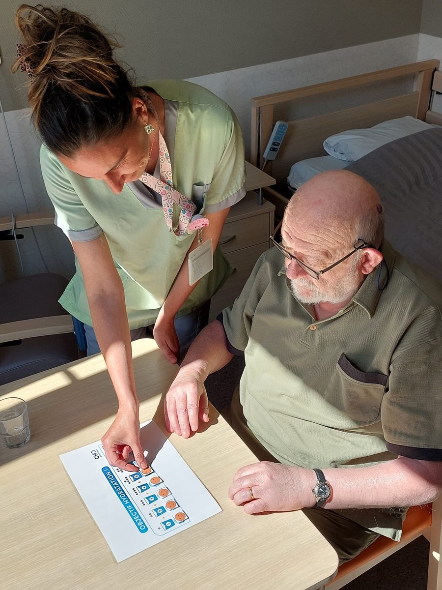 Le jury, composé d’experts reconnus en nutrition clinique et métabolisme, a salué la création d’une réglette d’hydratation innovante, conçue à partir de l’expérience patient. Née du constat des difficultés rencontrées par les résidents dans leur hydratation quotidienne, cet outil de sensibilisation se veut à la fois simple, ludique et durable. Réutilisable au quotidien, elle s’appuie sur les recommandations scientifiques de la Société européenne de nutrition entérale et parentérale (ESPEN).