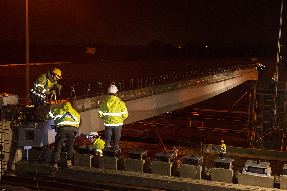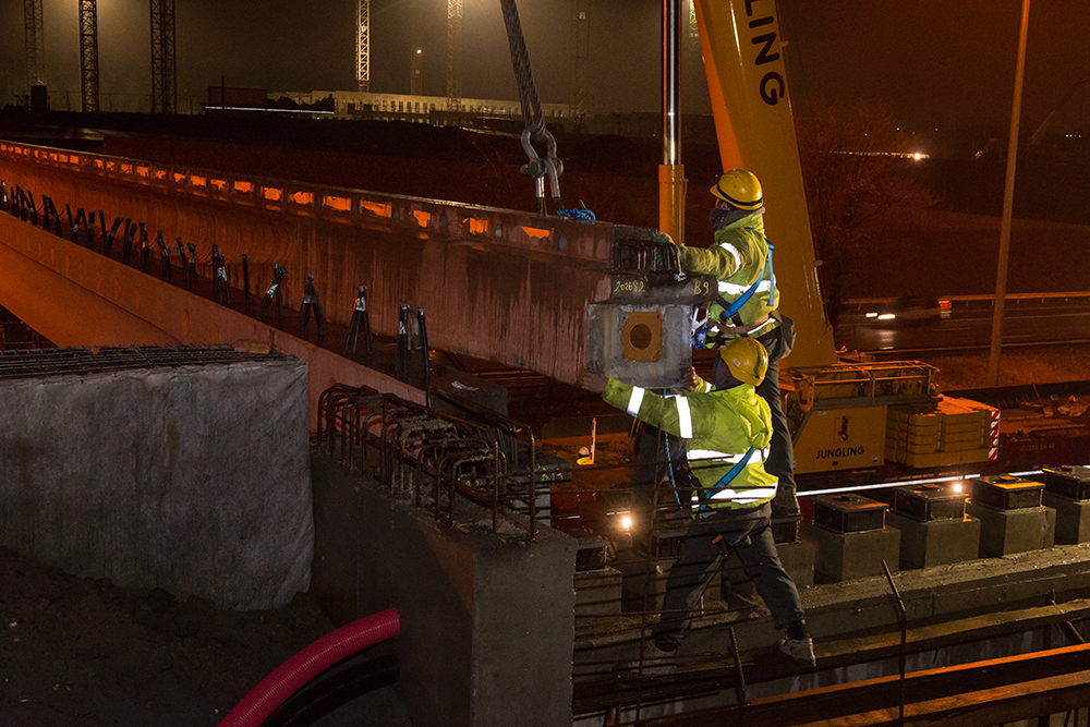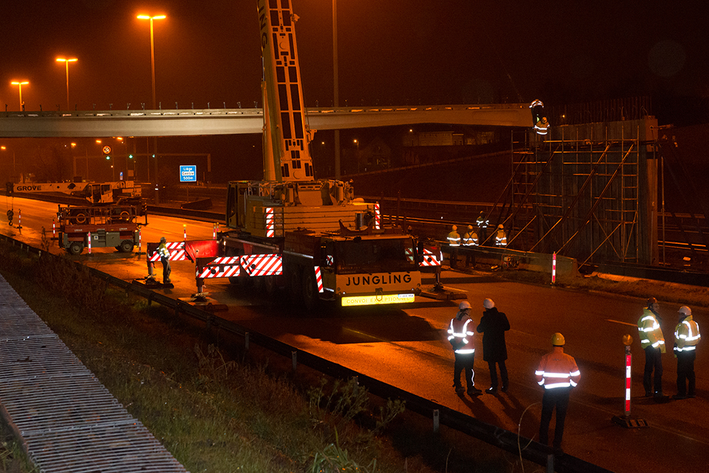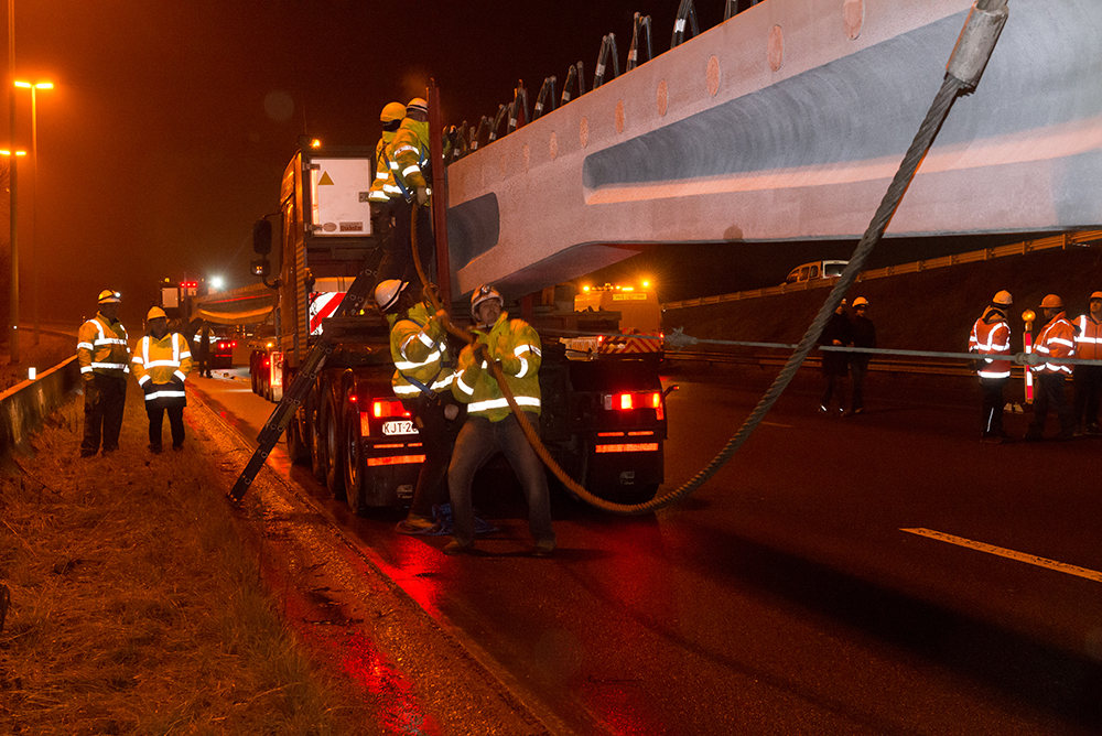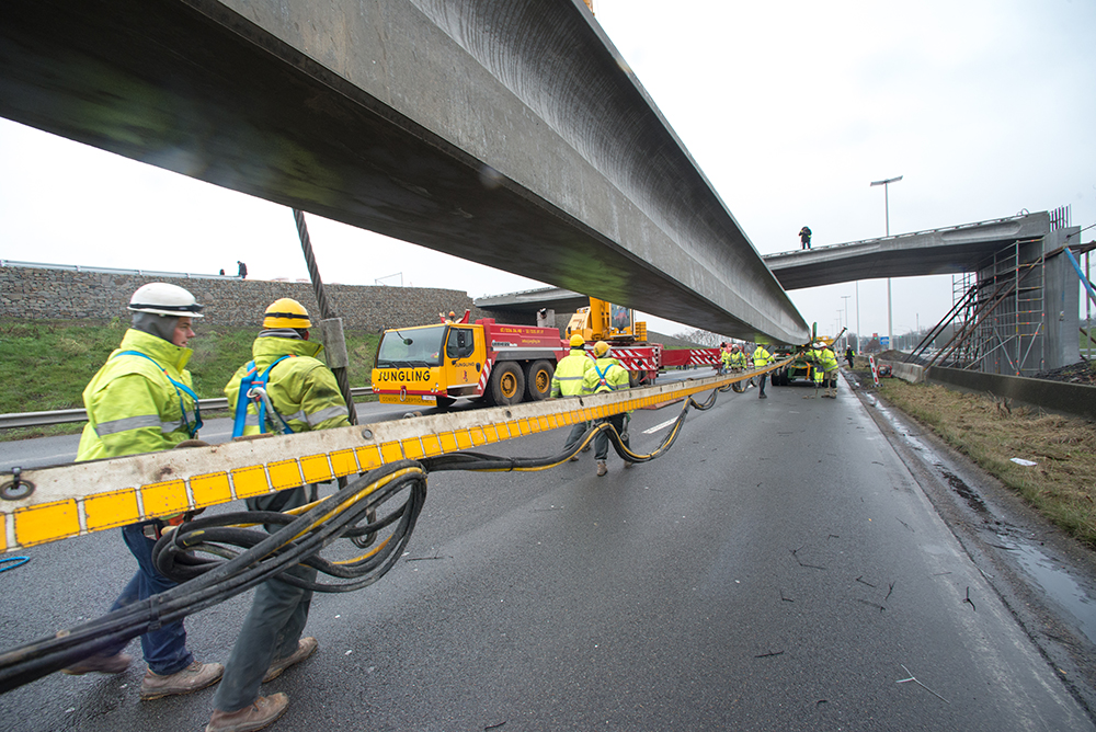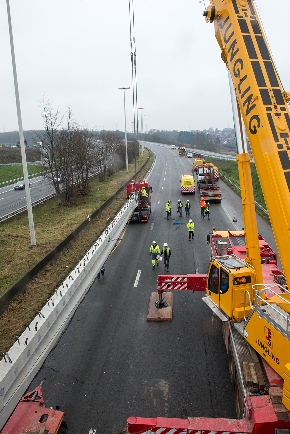 Les 18 poutres (33 mètres de long, 35 tonnes chacune) étaient déjà installées le dimanche 14 en milieu d’après-midi, bien plus tôt que l’horaire prévu. L’autoroute a été réouverte à la circulation le dimanche à 18h - la fermeture était initialement programmée jusqu’au lundi à 6h. Les 18 autres poutres (dans le sens de circulation Bruxelles-Luxembourg) seront posées ultérieurement, à une date encore à préciser.