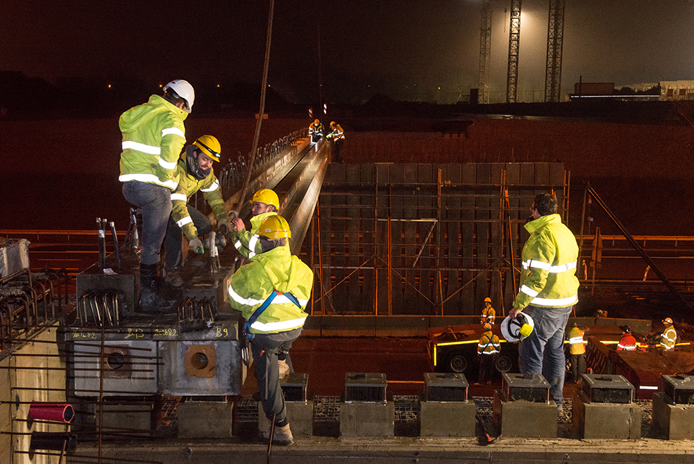 La pose de la pile centrale et des poutres constitue une étape importante du chantier. La grande majorité des utilisateurs accèderont à l’hôpital par l’autoroute.