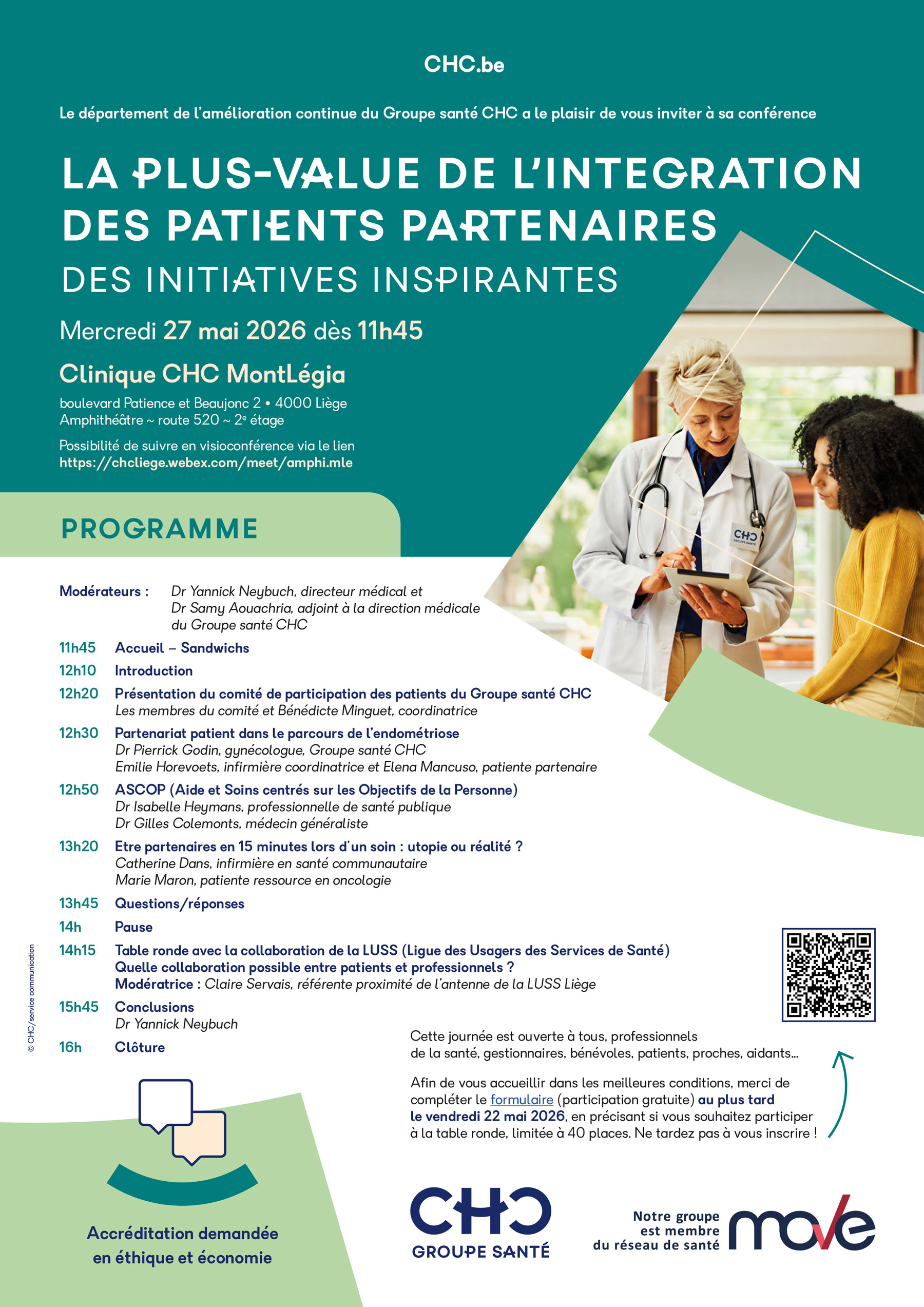 Le Groupe santé CHC est responsable du traitement de vos données. Les données à caractère personnel reprises dans le présent formulaire sont traitées confidentiellement, conformément aux dispositions du RGPD relatives à la protection de la vie privée. Pour en savoir plus à ce sujet, nous vous renvoyons vers notre Politique de confidentialité. En soumettant ce formulaire, vous déclarez être d'accord avec ce qui précède.